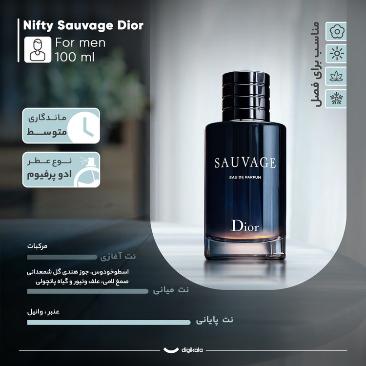 ادو پرفیوم مردانه نیفتی مدل ساواج دیور با حجم 100 میلی لیتر، عطری با بوی تند و خنک است که ترکیبی از فلفل سیچوان، نارنج و کهربا را ارائه میدهد. این عطر، که از مواد اولیه گیاهی، حیوانی و شیمیایی تهیه شده، برای استفاده روزانه و هدیه دادن مناسب است. نتهای آغازین آن شامل نارنج و مرکبات، با نتهای میانی اسطوخودوس، جوز هندی، گل شمعدانی و پاتچولی، و نتهای پایانی عنبر و وانیل است. این عطر برای تمام فصول مناسب است و نسبت به نسخه 60 میلی لیتری آن مقرون به صرفهتر است. ادو پرفیوم مردانه نیفتی مدل ساواج دیور با حجم 100 میلی لیتر، با رایحهای اغوا کننده، انتخابی ایدهآل برای افرادی است که به دنبال عطری خاص و منحصر به فرد هستند.