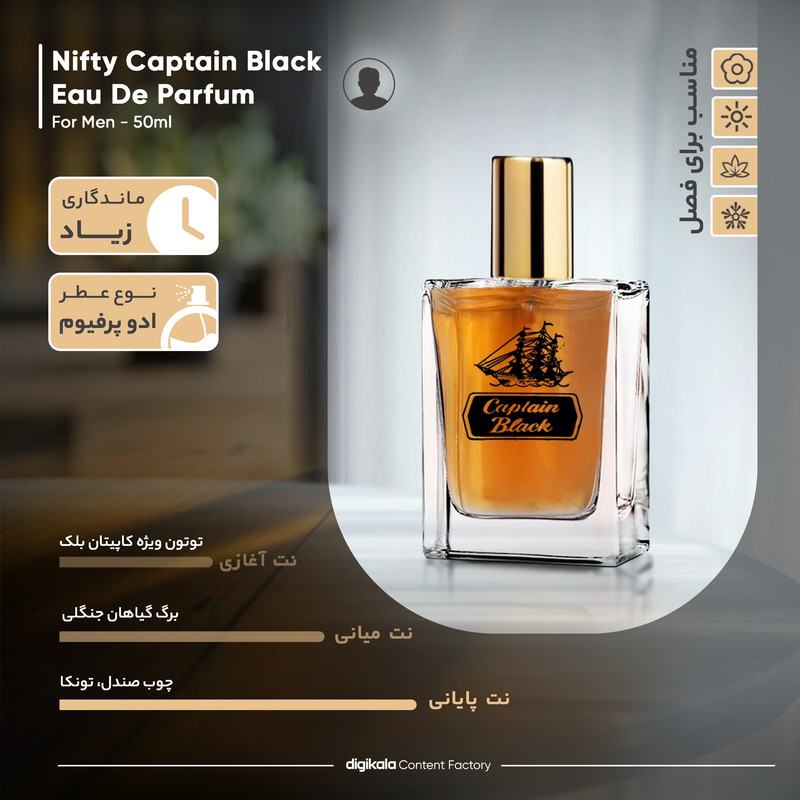 ادو پرفیوم مردانه نیفتی مدل کاپیتان بلک حجم 50 میلی لیتر